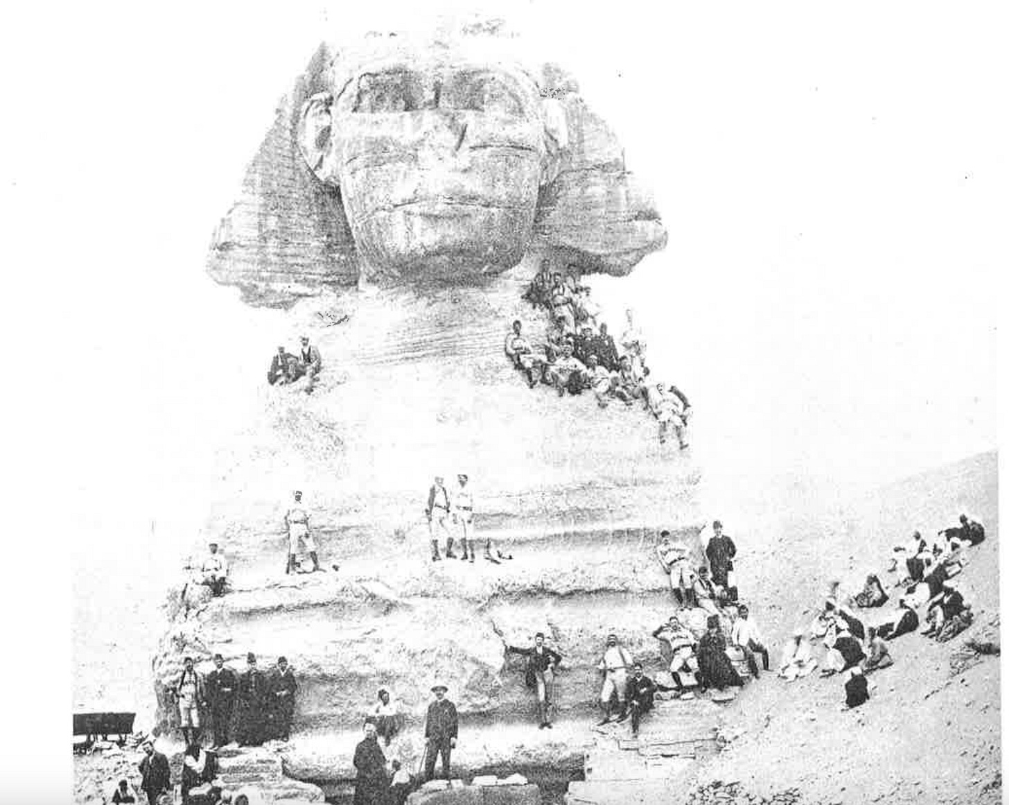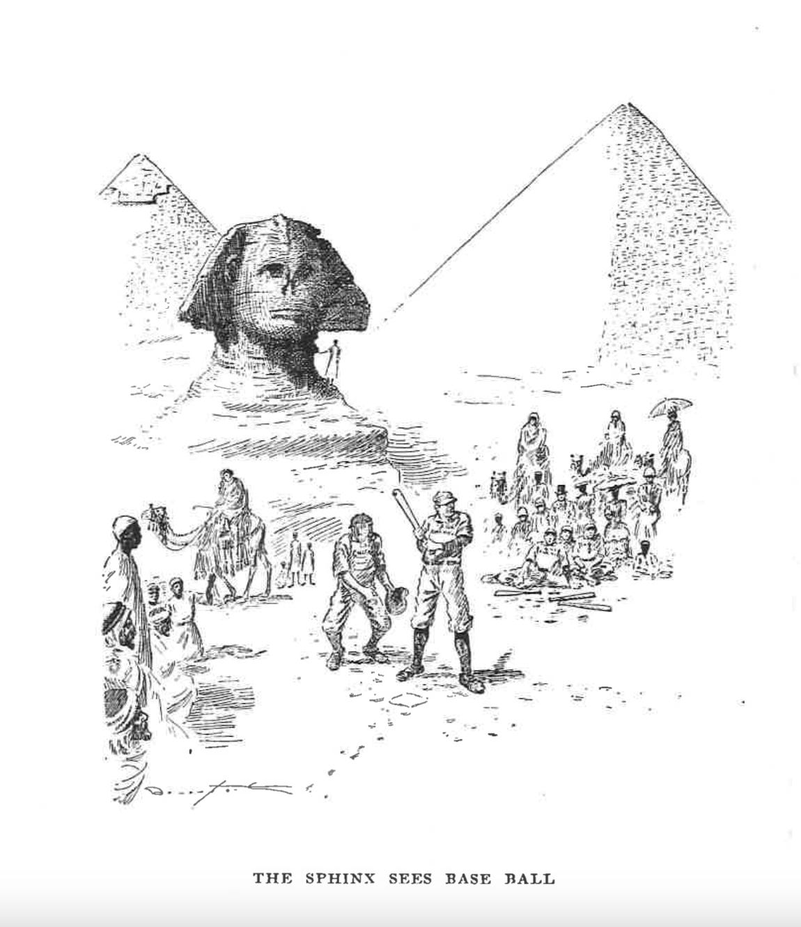 Jon Tener dug his foot into the hard, rocky dirt. The yellowish earth didn’t give much, even when he put all his big frame into it, but he needed a good pivot point if he was going to put on a show for the 1200 people there. Some of the spectators were Arabs or Bedouins or Mohammedans or Turks or Egyptians. Others, different in his eyes on a fundamental level from the first group, were French or Europeans or tourists. He looked at George “Dandy” Wood, who he had shared a few drinks with on the steamer ship when it was chugging into Suez. It was a short glance because his eye was drawn to the the Sphinx behind him. Let’s not tell too many people that all the ballplayers, Tener and Dandy included, took chances trying to hit the old thing in its right eye before the game.1
